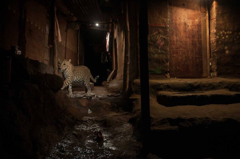 La imagen titulada Big cat in my backyard, muestra a un leopardo deambulando en la noche, por los rincones de una zona cercana a Aeren Colony, en busca de alimento. Con su trabajo, el único participante de la India en esta edición, busca que se reconozcan y se respeten los espacios para esta especie.