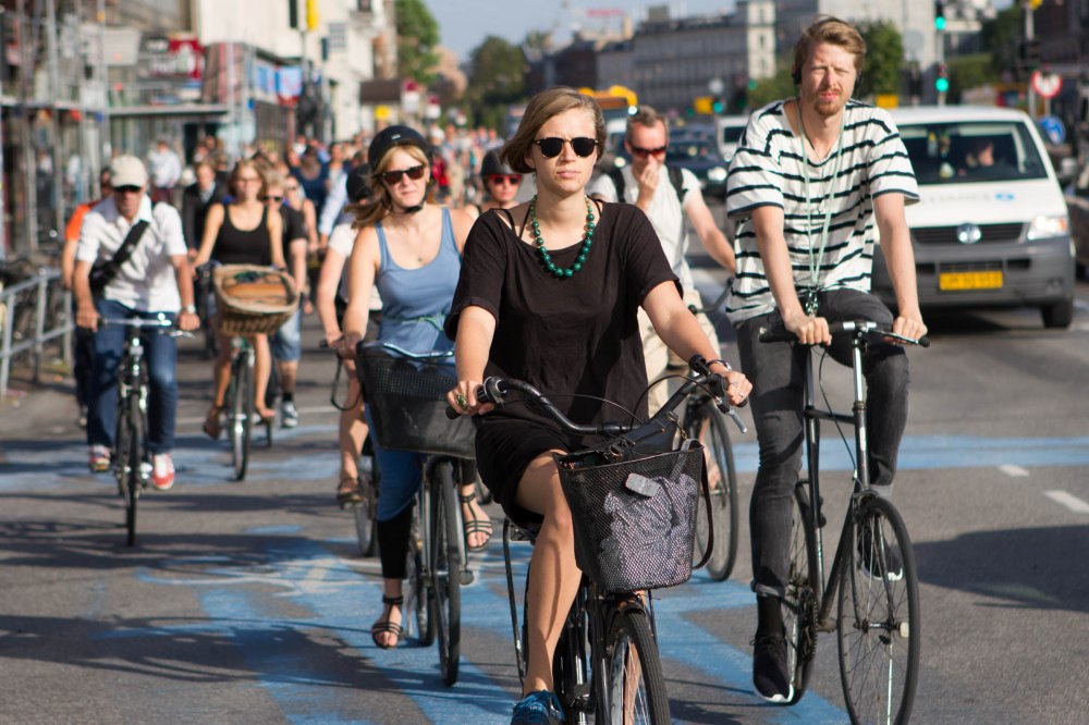 Dentro de la capital de Dinamarca, en Copenhague se puede encontrar un paraíso para aquellos amantes de las bicicletas, incluso hay carriles especialmente para ellas que ¡sí se respetan!, hay puentes especialmente desarrollados y establecidos para los ciclistas, se podría asegurar que a cualquier lugar a donde voltees encontrarás una bicicleta; con decirte que hay más de estos aparatos que gente e incluso que autos, la relación es de unas 650 mil bicicletas por 600 mil personas y más de 400 kilómetros de carriles diseñados, sólo para bicis.